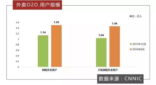 根據(jù)中國互聯(lián)網(wǎng)絡信息中心(CNNIC)發(fā)布的第38次《中國互聯(lián)網(wǎng)絡發(fā)展狀況統(tǒng)計報告》顯示,截至 2016 年 6 月,我國網(wǎng)上外賣用戶規(guī)模達到 1.5億,較 2015 年底增加 3610 萬,同比增長31.8%,占整體網(wǎng)民的21.1%。其中,手機用戶占比較大,高達1.46 億,同比增長 40.5%,占手機網(wǎng)民的22.3%。也就是說,平均每5個網(wǎng)民就有1個使用網(wǎng)絡外賣,而且?guī)缀醵际峭ㄟ^移動App進行下單。如此龐大而又增長迅速的用戶群體標志著外賣O2O擁有巨大的發(fā)展空間,也從側面說明外賣O2O已逐漸成為了和在線支付、網(wǎng)絡資訊等一樣不可或缺的互聯(lián)網(wǎng)基礎服務。