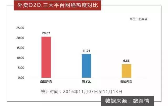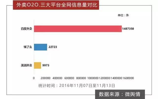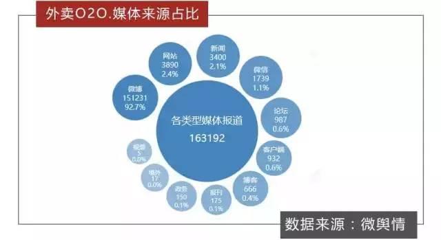 而據(jù)統(tǒng)計,在11月7日至13日期間,關于外賣O2O的全網(wǎng)信息總量高達163余萬條,微博成為該話題的主要輿論平臺,信息量占比達92.7%。