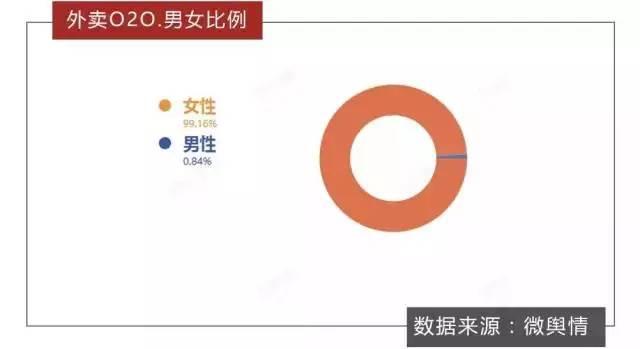 從用戶群的性別比例來看,女性網(wǎng)友更關注外賣O2O,并且占比高達99.16%。