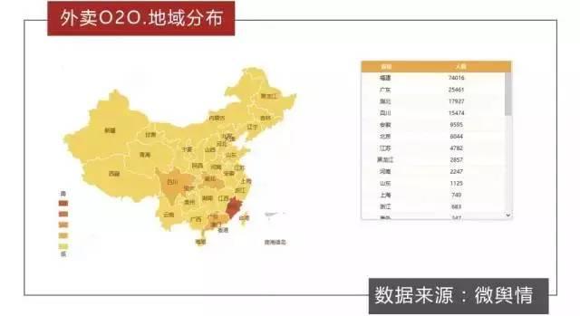 從用戶群的地域分布來看,福建、廣東、湖北成為了關注外賣O2O網(wǎng)友人數(shù)最多的前三個地域。